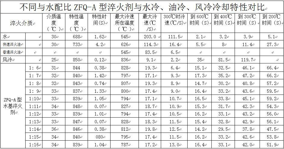 ZFQ-A型與水1:10配比時(shí)的冷卻性